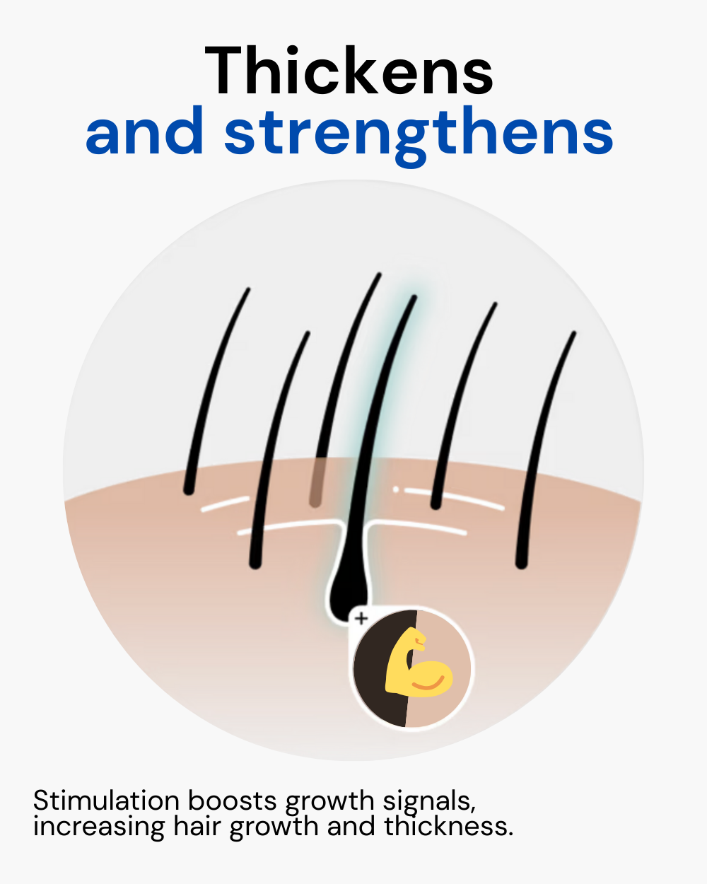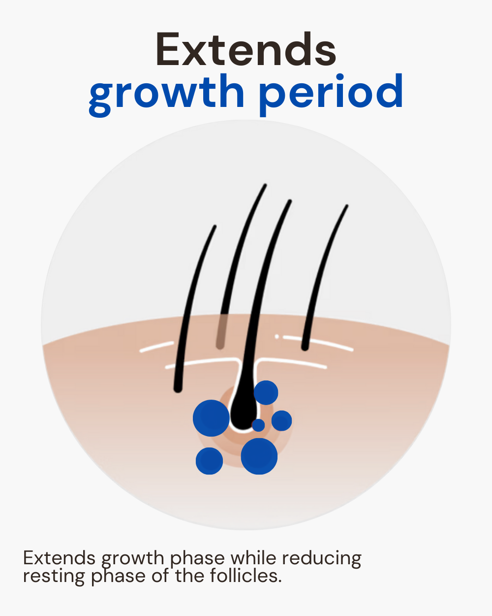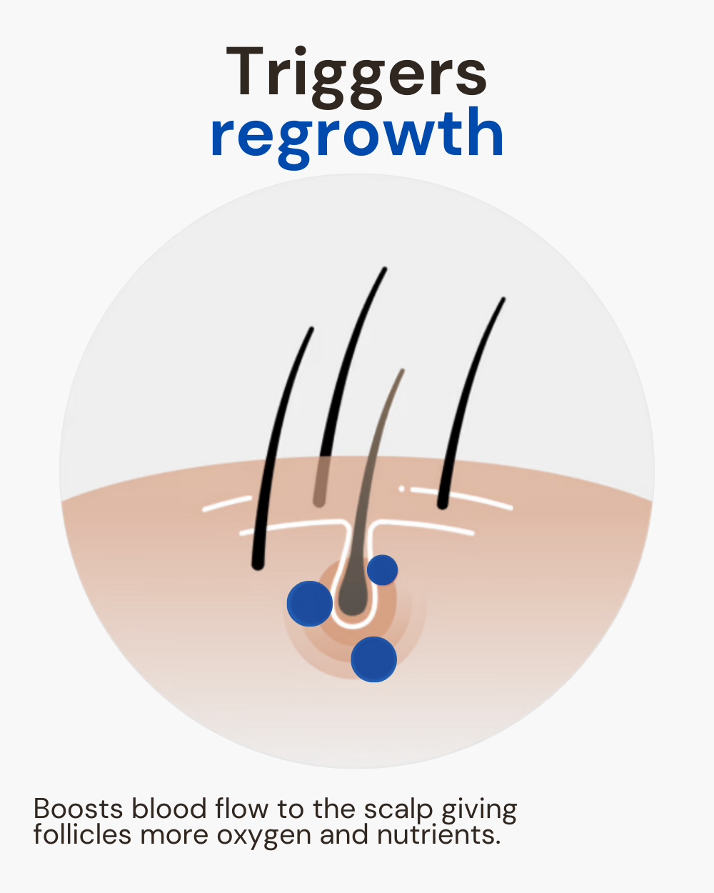 Minoxidil boosts blood flow to the scalp giving it nutrients to kickstart growth and thicken strands.