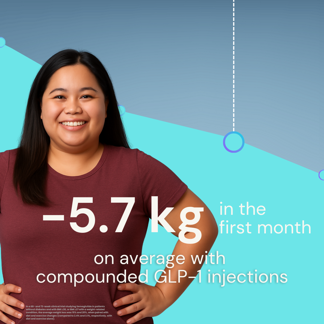 Compounded semaglutide is a weekly shot that uses the same active ingredient for weight loss as Ozempic® and Wegovy®.